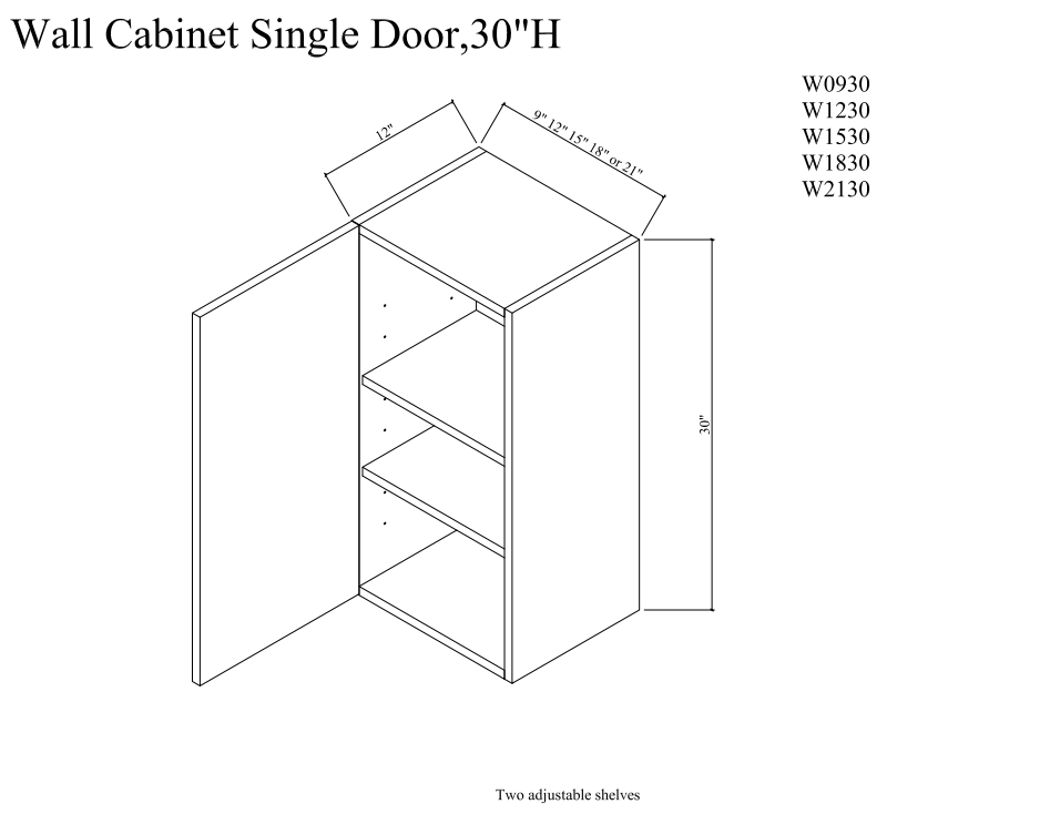 Wall cabinet single door,30″H